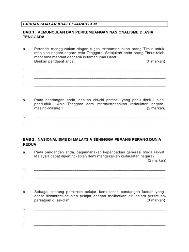 Latihan Soalan Kbat Sejarah Spm Pdf